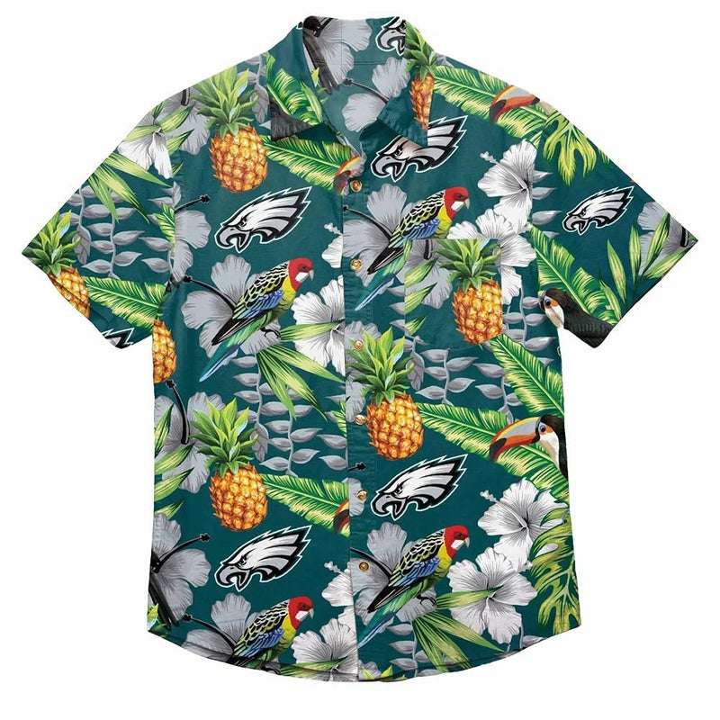 NFL イーグルス アロハシャツ ハワイアン Floral Button Up Shirt FOCO ミッドナイトグリーン