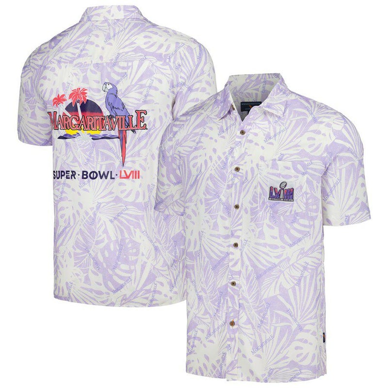 NFL ボタンシャツ 第58回スーパーボウル Sandwashed Monstera Print Party Button-Up Shirt Margaritaville パープル