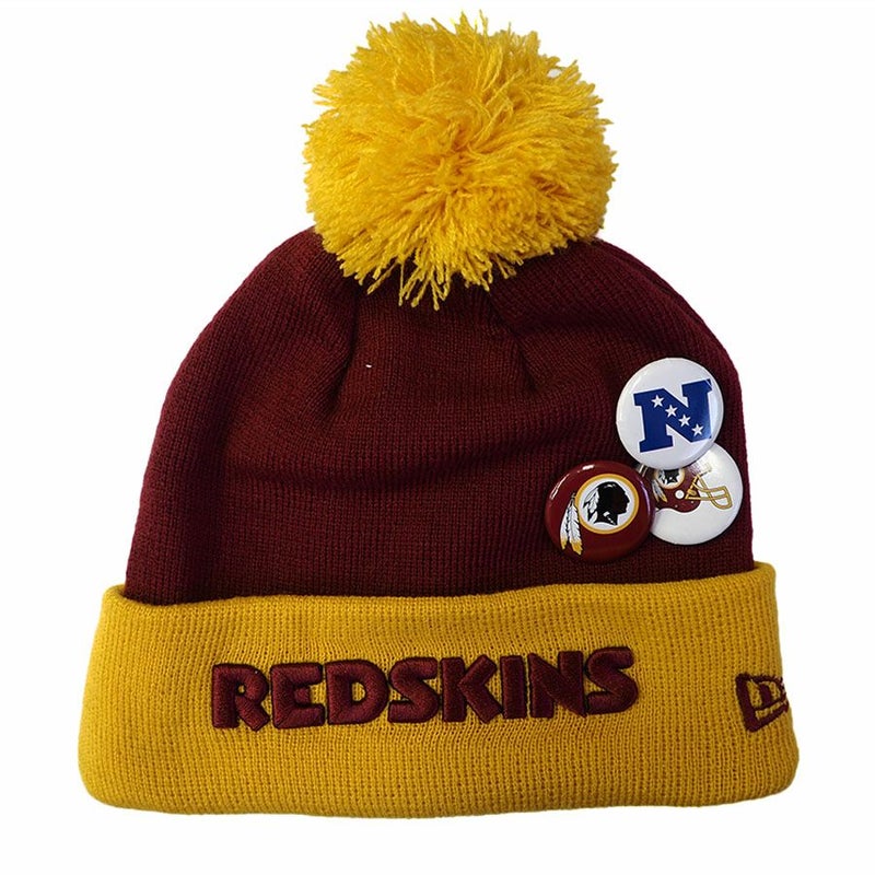 NFL ニットキャップ ニット帽 レッドスキンズ チームボタンアップ カフ ポム ビーニー 缶バッチ ニューエラ New Era バーガンディ