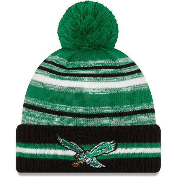 NFL イーグルス ニットキャップ 2021 サイドライン Historic Pom Cuffed Knit Hat ニット帽 ニューエラ/New Era グリーン ブラック