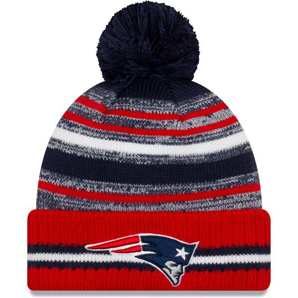 NFL ペイトリオッツ ニットキャップ 2021 サイドライン Sideline Sport Pom Cuffed Knit Hat ニューエラ/New Era ネイビー レッド