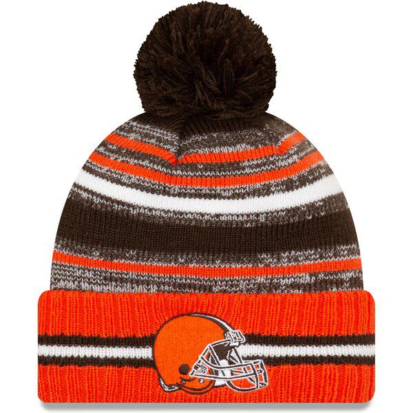 NFL ブラウンズ ニットキャップ 2021 サイドライン Sideline Sport Pom Cuffed Knit Hat ニューエラ/New Era ブラウン オレンジ