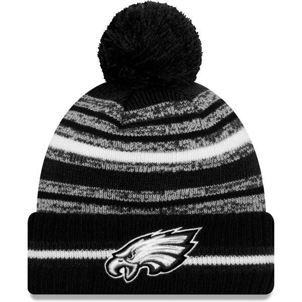 NFL イーグルス ニットキャップ 2021 サイドライン Sideline Sport Pom Cuffed Knit Hat ニューエラ/New Era ブラック