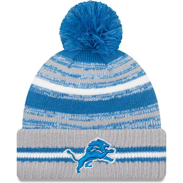 NFL ライオンズ ニットキャップ 2021 サイドライン Sideline Sport Pom Cuffed Knit Hat ニューエラ/New Era ブルー グレー