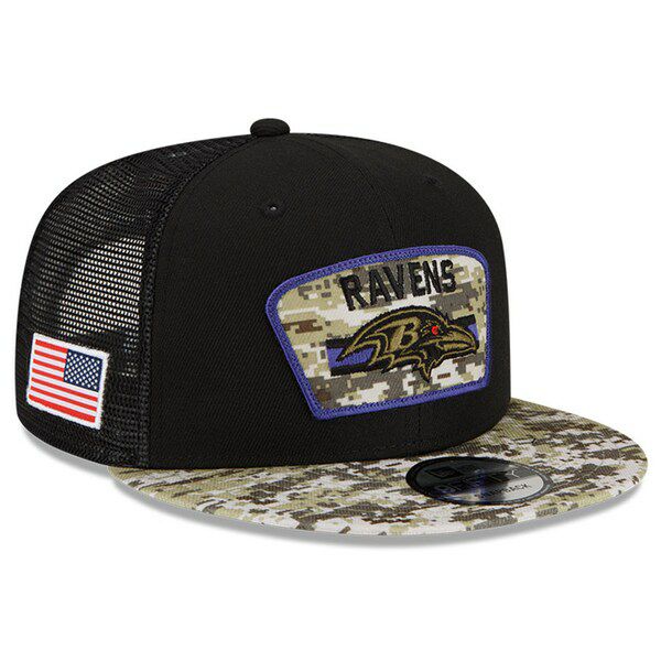 関連キーワード[キャップ][帽子][2021 Salute To Service Trucker 9FIFTY Snapback Adjustable Hat][Baltimore Ravens][Black/Camo][アメリカンフットボール アメフト][BAL]
