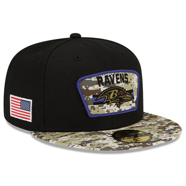 関連キーワード[ブラック カモ][キャップ][帽子][2021 Salute To Service 59FIFTY Fitted Hat][Baltimore Ravens][Black/Camo][アメリカンフットボール アメフト][BAL]