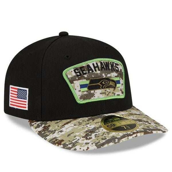関連キーワード[キャップ][帽子][2021 Salute To Service Low Profile 59FIFTY Fitted Hat][Seattle Seahawks][Black/Camo][アメリカンフットボール アメフト][SEA/ホークス/シーホ]