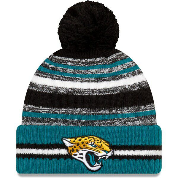 NFL ジャガーズ ニットキャップ 2021 NFL Sideline サイドライン Sport Official Pom Cuffed Knit Hat ニューエラ/New Era Black/Teal