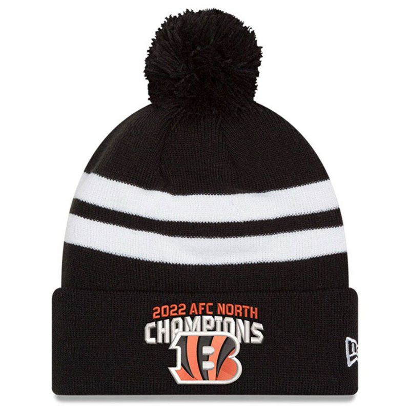 NFL ベンガルズ ニットキャップ 2022 AFC 北地区優勝 ディビジョン Champions Top Stripe Pom Knit ニューエラ/New Era ブラック