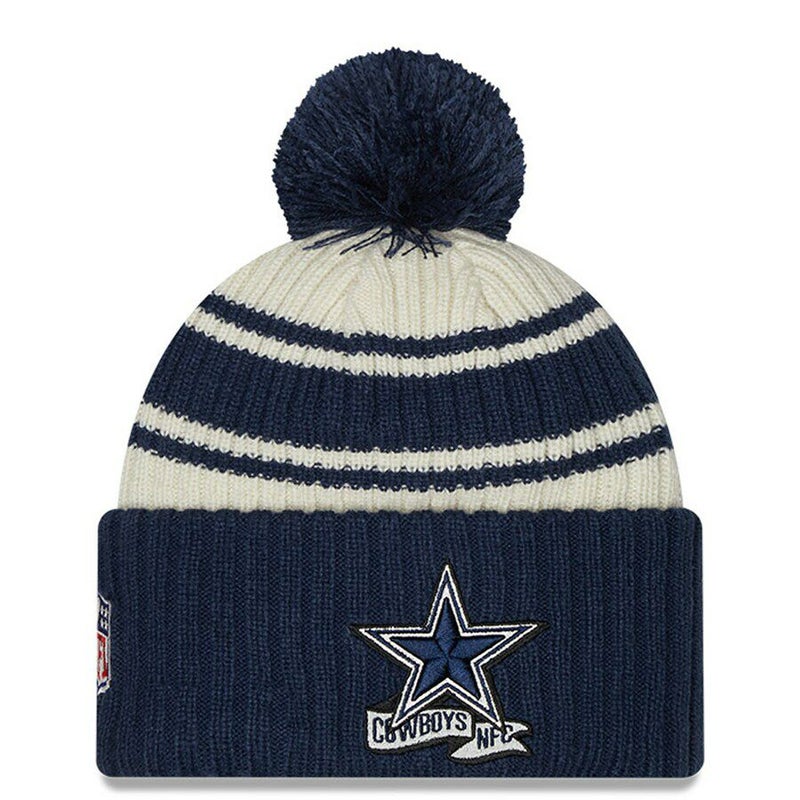 NFL カウボーイズ ニットキャップ 2022 サイドライン Sideline Sport Cuffed Pom Knit Hat ニューエラ/New Era クリーム ネイビー