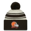 NFL ブラウンズ ニットキャップ 2022 サイドライン Sideline Sport Cuffed Pom Knit Hat ニューエラ/New Era クリーム ブラウン
