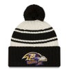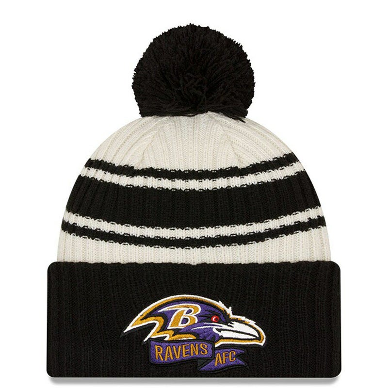 NFL レイブンズ ニットキャップ 2022 サイドライン Sideline Sport Cuffed Pom Knit Hat ニューエラ/New Era クリーム ブラック