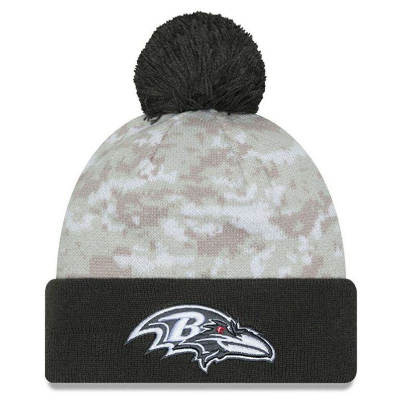 NFL レイブンズ ニットキャップ サルートトゥサービス2024 Cuffed Knit Hat with Pom ニューエラ/New Era ホワイト グラファイト