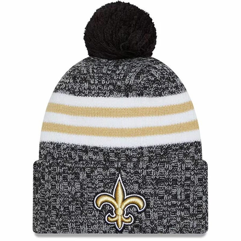 NFL セインツ ニットキャップ 【現地買付】2023 サイドライン Sport Cuffed Pom Knit Hat ニューエラ/New Era ブラック