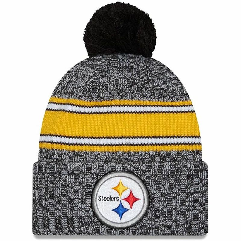 NFL スティーラーズ ニットキャップ 【現地買付】2023 サイドライン Sport Cuffed Pom Knit Hat ニューエラ/New Era グレー