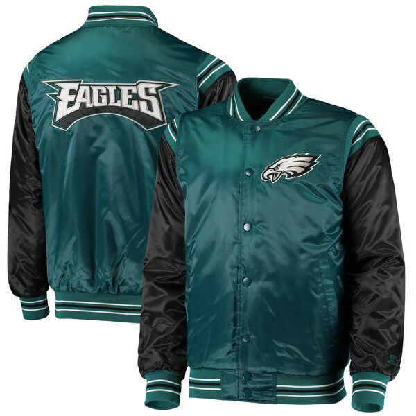 NFL イーグルス ジャケット サテンジャケット Enforcer Varsity Jacket ジャケット STARTER ミッドナイトグリーン ブラック 2212fsg