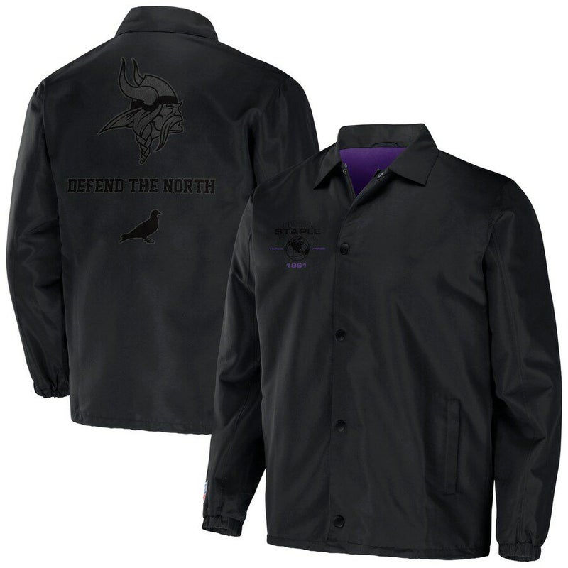 NFL バイキングス ジャケット NFL フルスナップ コーチジャケット アウター Staple ステイプル ブラック