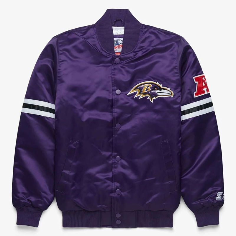 NFL レイブンズ スタジャン スターター x オマージュ バーシティ サテンジャケット アウター STARTER パープル 2212fsg