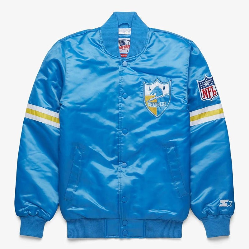 NFL チャージャース スタジャン スターター x オマージュ バーシティ サテンジャケット アウター STARTER ライトブルー 2212fsg