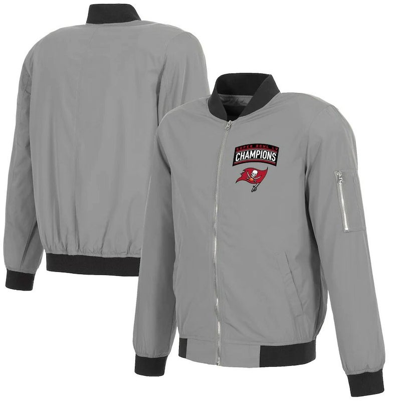 NFL バッカニアーズ ジャケット 第55回スーパーボウル フルジップ ボンバージャケット アウター ナイロン Fanatics Branded グレー