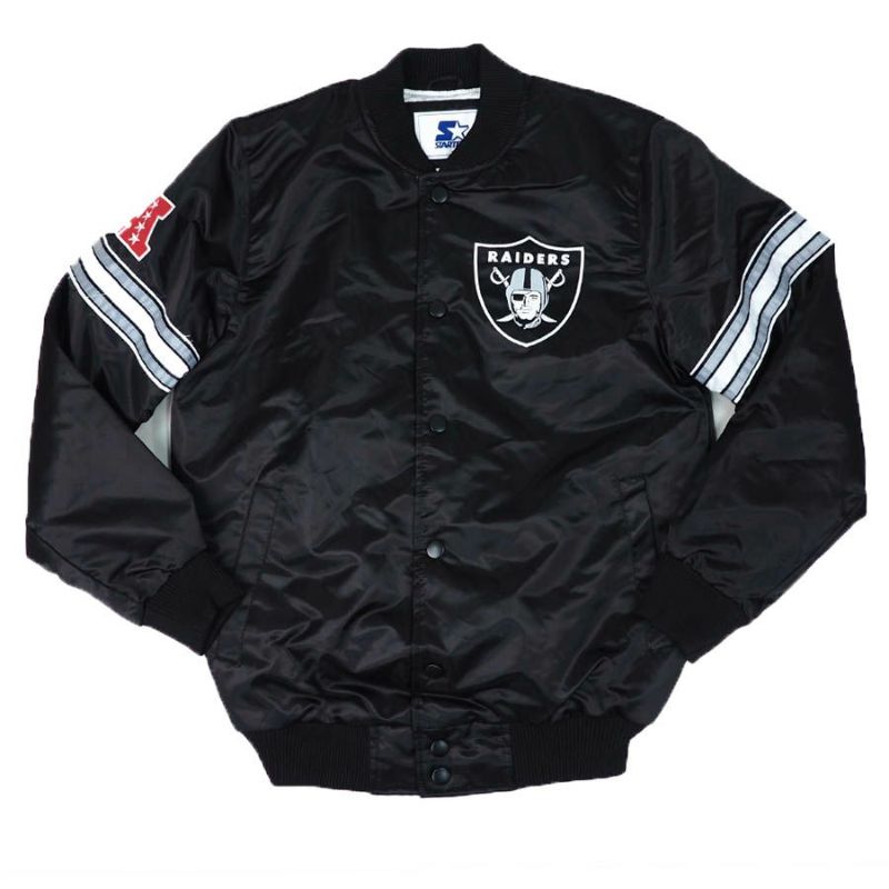 NFL レイダース スタジャン ピックアンドロール バーシティ サテンジャケット アウター STARTER ブラック 2212fsg