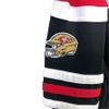 ボディに施された横縞(ホリゾンタルストライプ)のデザインと、立体的な刺繍のチームロゴパッチが特徴的なファッション性の高いアイテムです。カラーはブラック/レッドです。