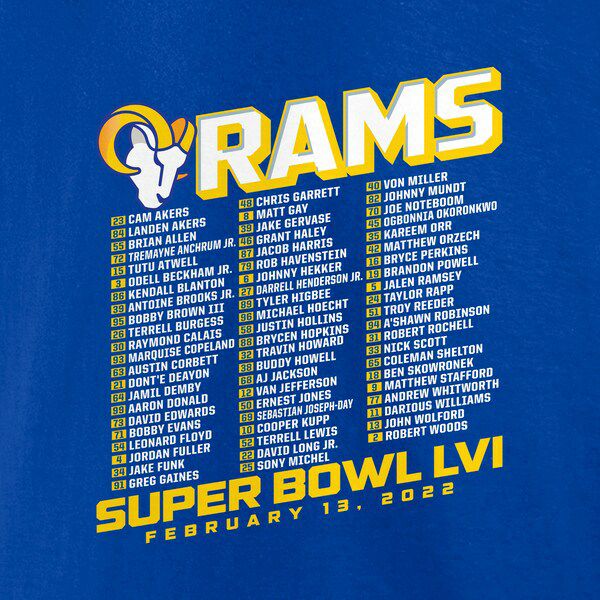 第56回NFLスーパーボール進出記念アイテム NFL ラムズ Tシャツ 第56回 スーパーボウル 進出記念 Super Bowl LVI Bound Tilted Roster ロイヤル
