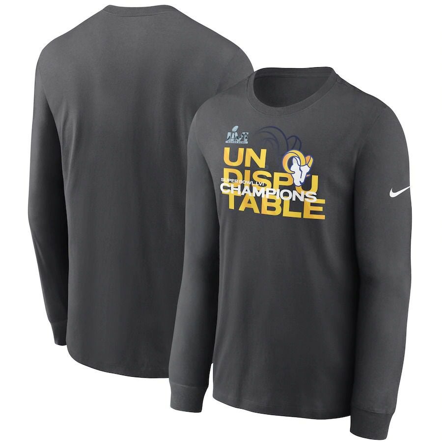 第56回 スーパーボウル優勝記念アイテム! NFL ラムズ Tシャツ 第56回 スーパーボウル 優勝記念 Super Bowl LVI Champions Slogan Tee ナイキ/Nike アンスラサイト
