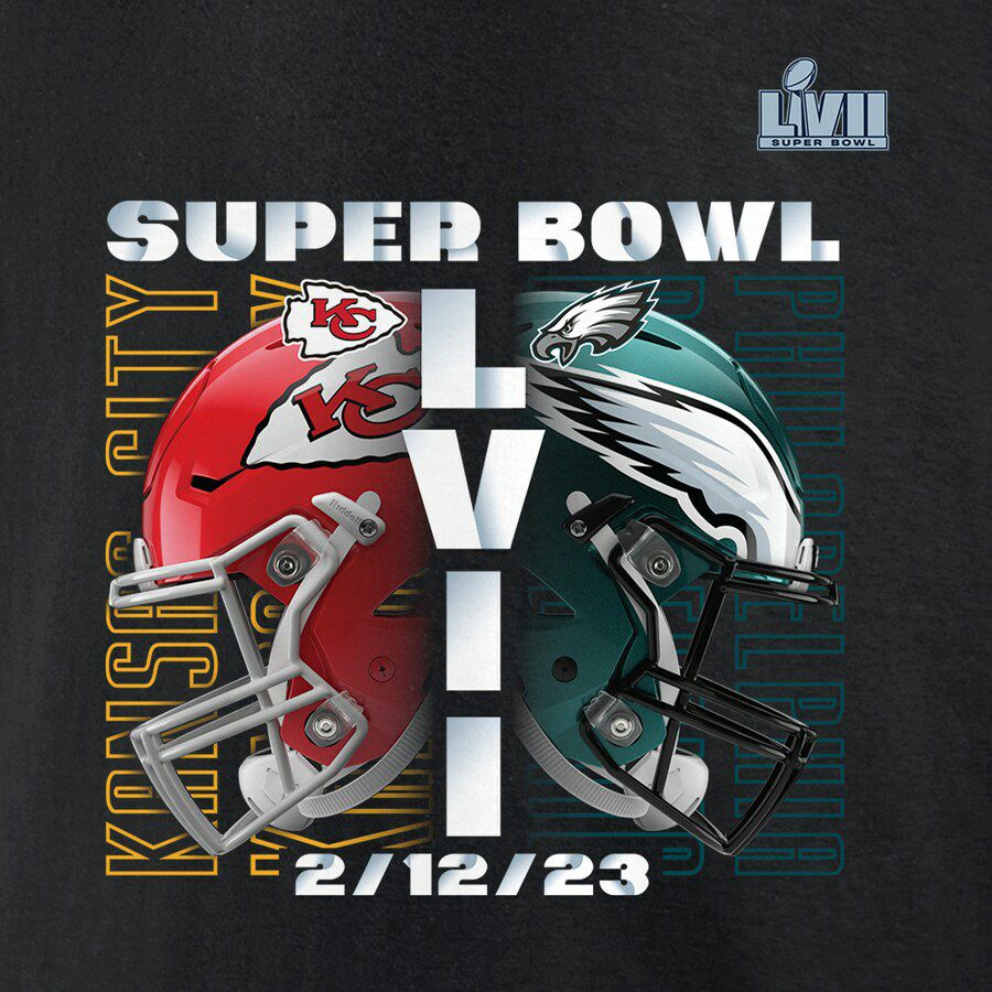 第57回NFLスーパーボウル進出記念アイテム NFL チーフス イーグルス Tシャツ 第57回 スーパーボウル 進出記念 マッチアップ Helmet Decals T-Shirt Fanatics ブラック