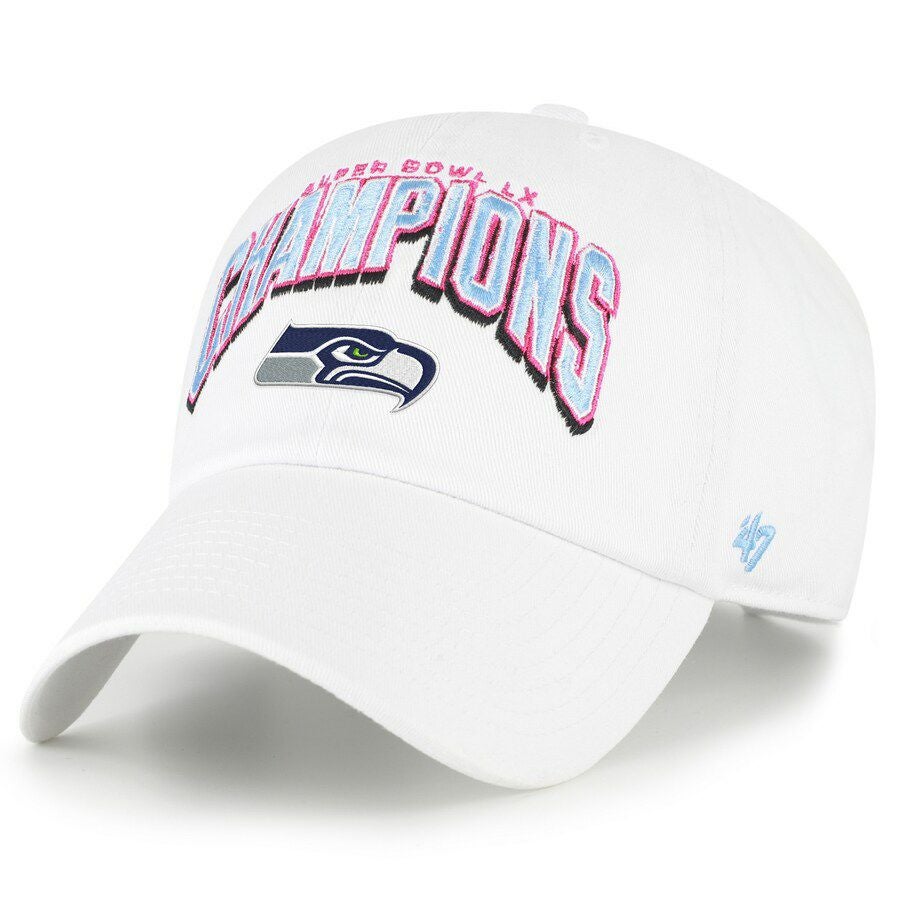 第60回NFLスーパーボウル優勝記念アイテム NFL シーホークス キャップ 第60回スーパーボウル優勝記念 Side Patch Clean Up Adjustable Hat 47Brand ホワイト