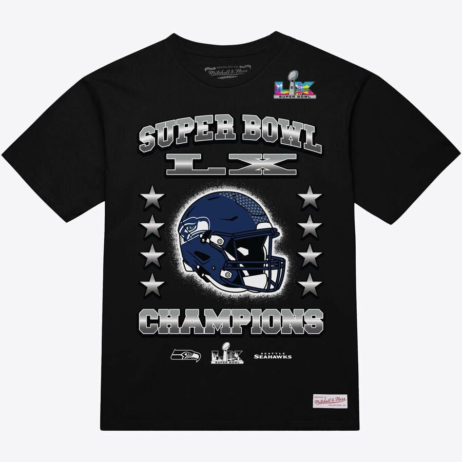 第60回NFLスーパーボウル優勝記念アイテム NFL シーホークス Tシャツ 第60回スーパーボウル優勝記念 Helmet Arch T-Shirt ミッチェル&ネス/Mitchell & Ness ブラック