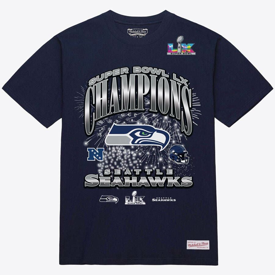 第60回NFLスーパーボウル優勝記念アイテム NFL シーホークス Tシャツ 第60回スーパーボウル優勝記念 Arch T-Shirt ミッチェル&ネス/Mitchell & Ness カレッジネイビー