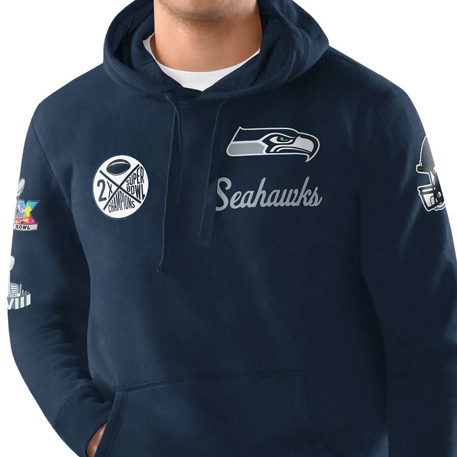 第60回NFLスーパーボウル優勝記念アイテム NFL シーホークス パーカー 第60回スーパーボウル 優勝 連覇 2x Classic Fleece Hoodie STARTER カレッジネイビー