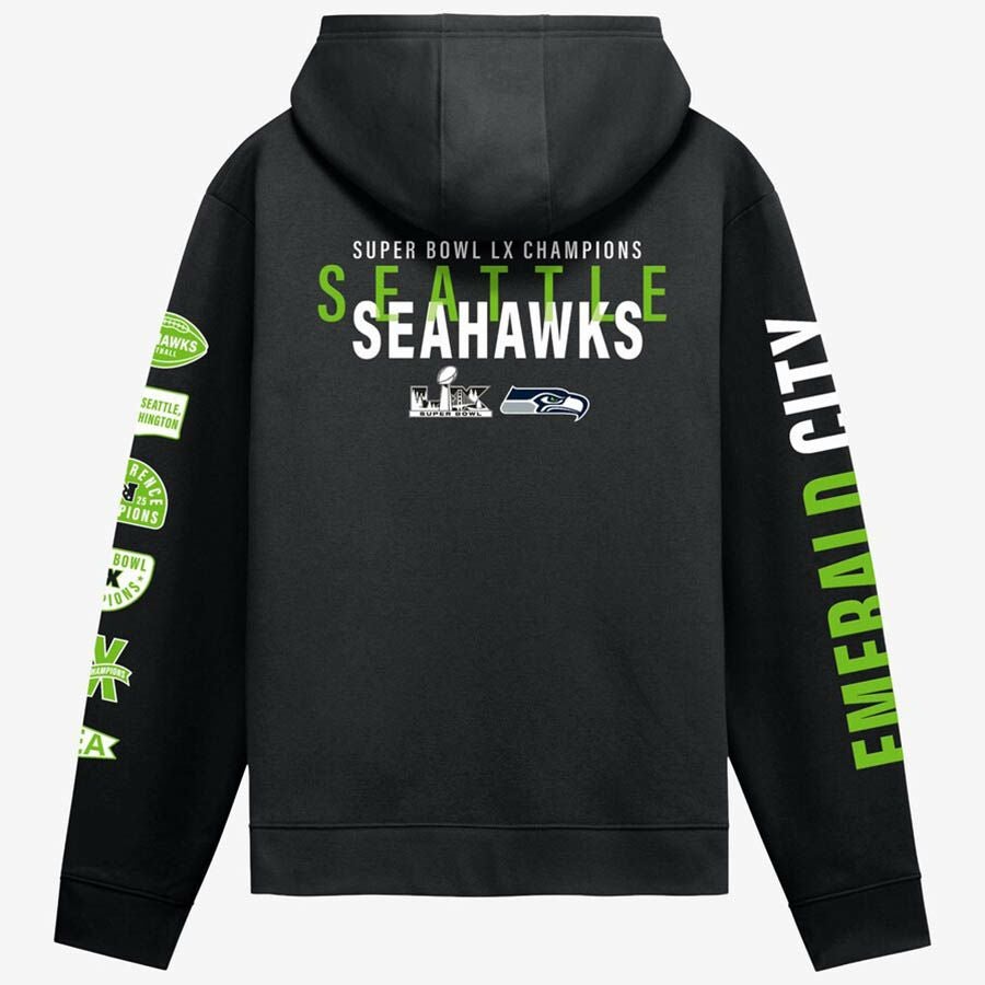 第60回NFLスーパーボウル優勝記念アイテム NFL シーホークス パーカー 第60回スーパーボウル優勝記念 Banner Year Hoodie パーカー Fanatics ブラック
