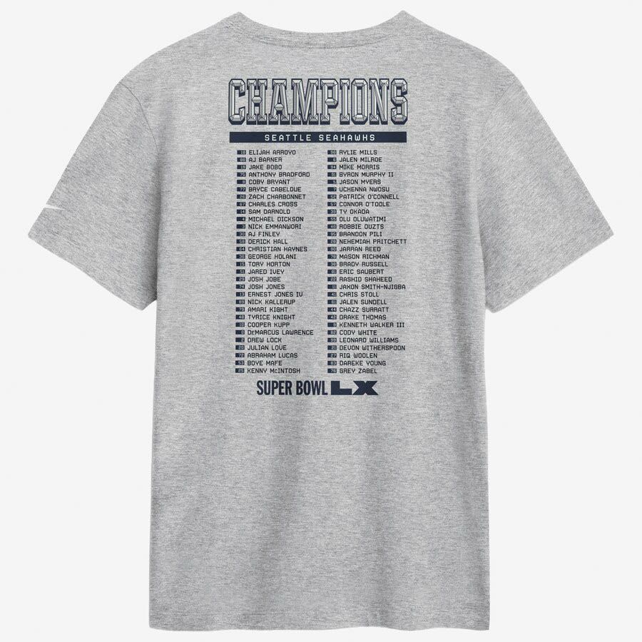 第60回NFLスーパーボウル優勝記念アイテム NFL シーホークス Tシャツ 第60回スーパーボウル優勝記念 Ice Classic ロースター T-Shirt ナイキ/Nike ヘザーグレー