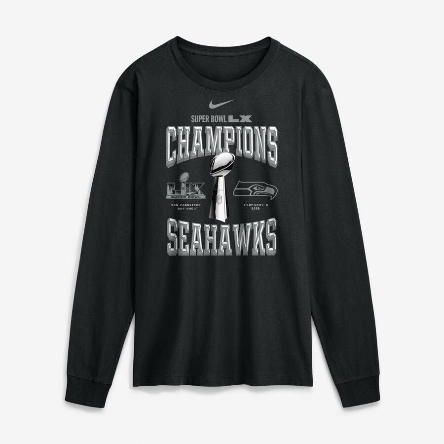 第60回NFLスーパーボウル優勝記念アイテム NFL シーホークス Tシャツ 第60回スーパーボウル優勝記念 ロッカールーム Trophy Collection ロングスリーブ T-Shirt ナイキ/Nike ブラック