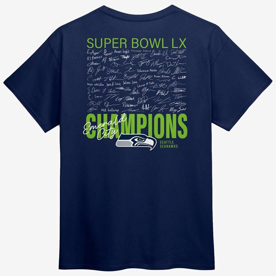 第60回NFLスーパーボウル優勝記念アイテム NFL シーホークス Tシャツ 第60回スーパーボウル優勝記念 Autograph Signing ロースター T-Shirt Fanatics カレッジネイビー