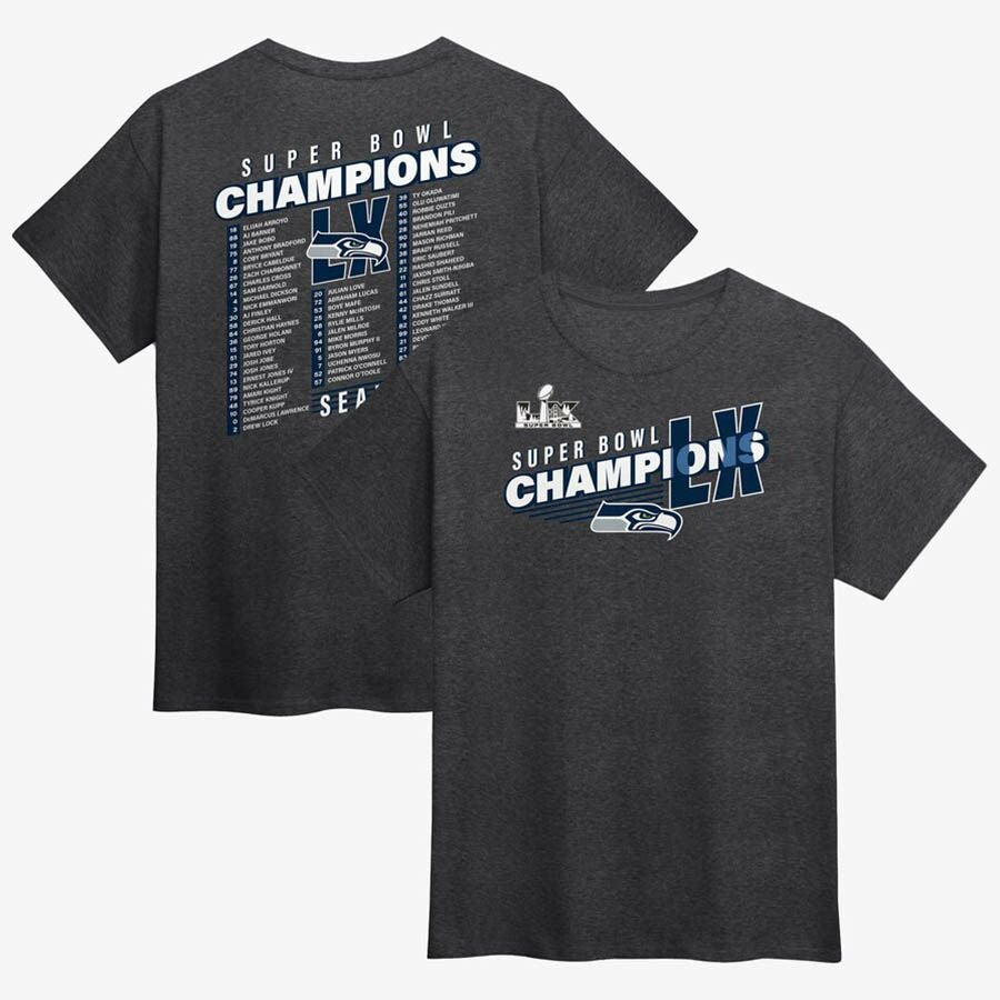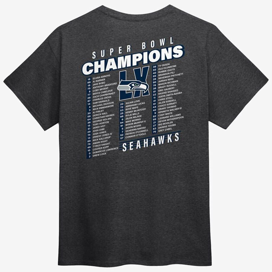 第60回NFLスーパーボウル優勝記念アイテム NFL シーホークス Tシャツ 第60回スーパーボウル優勝記念 Best Teammates ロースター T-Shirt Fanatics ヘザーチャコール