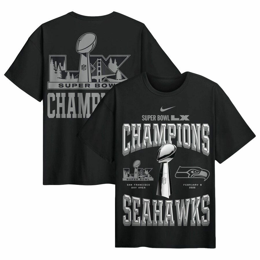 第60回NFLスーパーボウル優勝記念アイテム NFL シーホークス Tシャツ 第60回スーパーボウル優勝記念 ロッカールーム Trophy Collection レプリカ T-Shirt ナイキ/Nike ブラック