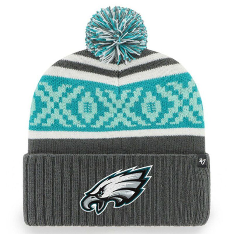 NFL イーグルス ニットキャップ 第57回 スーパーボウル 進出記念 Motif Cuffed Pom Knit Hat 47Brand チャコール