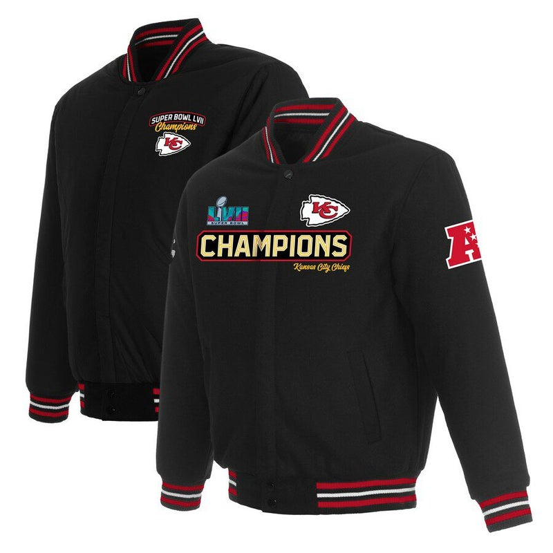 NFL チーフス ジャケット 第57回 スーパーボウル 優勝記念 Team リバーシブル Wool Full-Snap Jacket JH Design ブラック