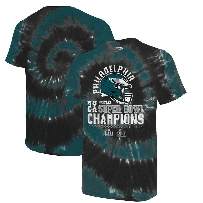 NFL イーグルス Tシャツ 2x スーパーボウル 優勝記念 Hard Count Spiral Tie-Dye T-Shirt Majestic ミッドナイトグリーン ブラック