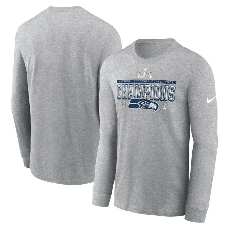 NFL シーホークス Tシャツ 【海外モデル】2025 NFC 優勝 ロッカールーム Trophy Collection Long Sleeve T-Shirt ナイキ/Nike ヘザーグレー