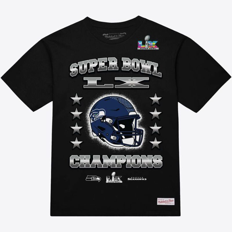 NFL シーホークス Tシャツ 第60回スーパーボウル優勝記念 Helmet Arch T-Shirt ミッチェル&ネス/Mitchell & Ness ブラック