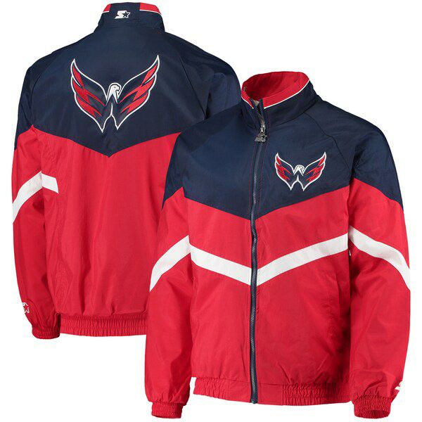 NHL キャピタルズ ジャケット/アウター ベンチ コーチ ラグラン フルジップ スターター/Starter Red/Navy