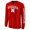 カレッジ Tシャツ NCAA ネブラスカ大学 コーンハスカーズ ディストレスト アーチ オーバー ロゴ ロングスリーブ スカーレット