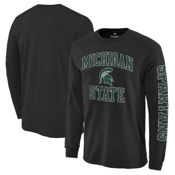 カレッジ Tシャツ NCAA ミシガン州立大学 スパルタンズ ディストレスト アーチ オーバー ロゴ ロングスリーブ ブラック