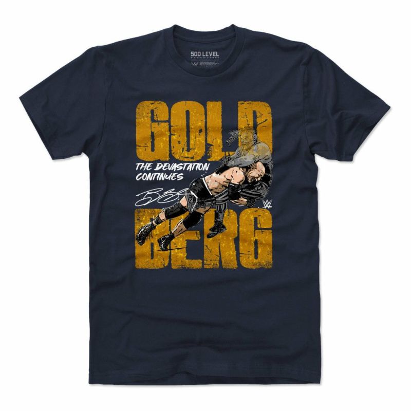 WWE ビル・ゴールドバーグ Tシャツ Superstars Devastation 500Level True Navy