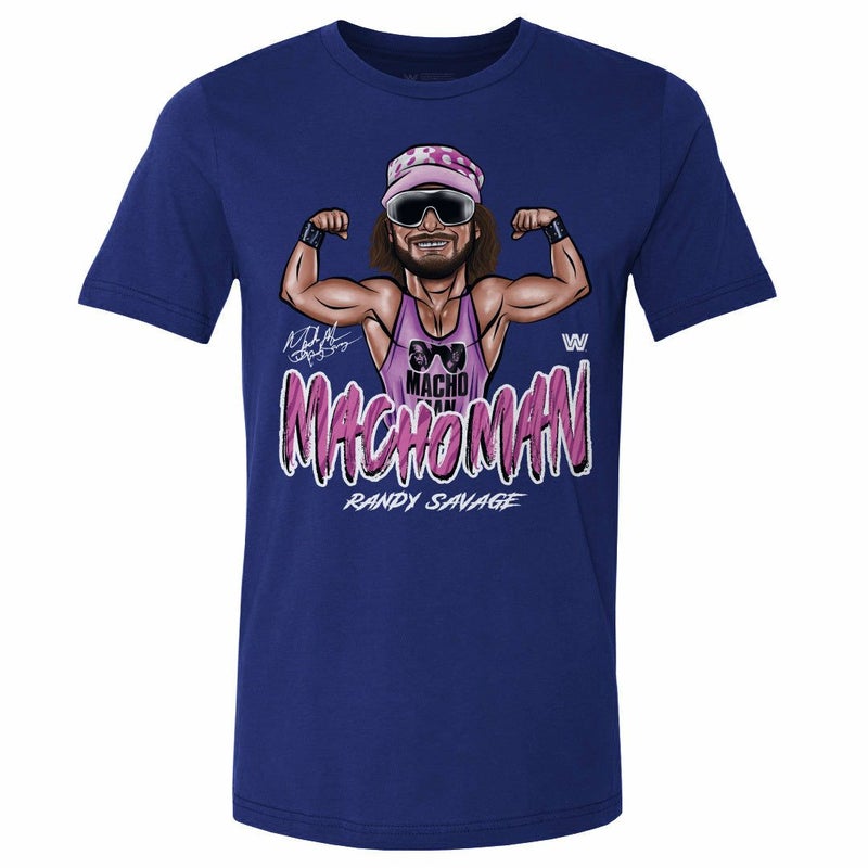 WWE ランディ・サベージ Tシャツ Legends Macho Man Flex Cartoon 500Level ロイヤルブルー