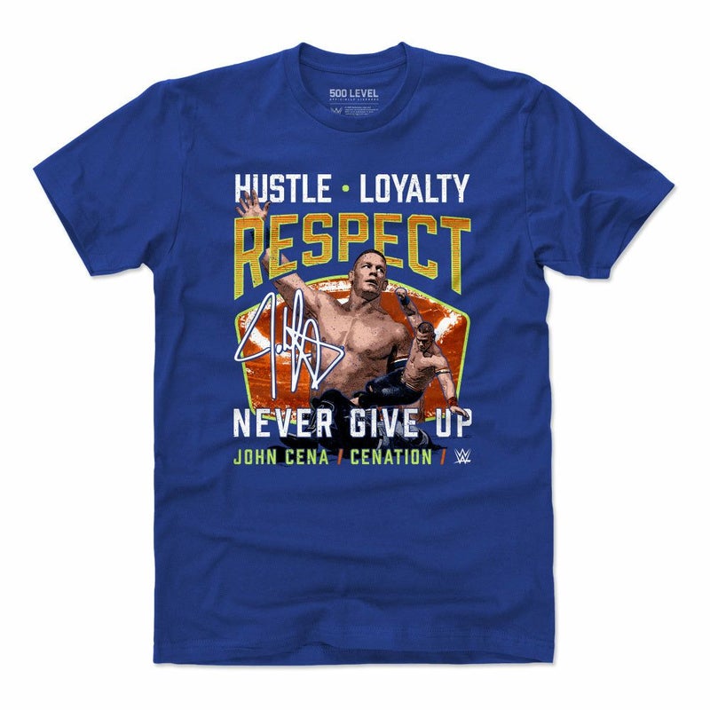WWE ジョン・シナ Tシャツ Superstars Cenation Respect 500Level ロイヤルブルー